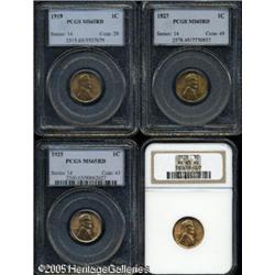<B>1919 1C MS65 Red PCGS,</B></I> bright reddish-golden color and a good strike; <B>1925 MS65 Red PCGS,</B></I> frosty and exceptionally bright throughout with memorable surfaces; <B>1927 MS65 Red PCGS,</B></I> bright reddish-golden color overall with noticeable planchet flaking in progress at the base of the reverse; and a <B>1928 MS65 Red NGC,</B></I> lustrous and sharp throughout. 4 Coins Lot:5452