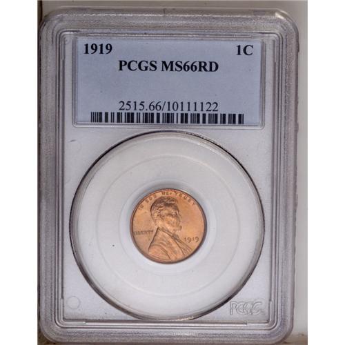 <B>1919<1C> MS66 Red PCGS.</B></I> Pale and wholly original copper-orange surfaces with great luster and a sharp strike. An impressive early example of the Lincoln cent.