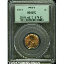 <B>1919 1C MS66 Red PCGS.</B></I> This lovely cent reveals immaculately preserved, highly lustrous surfaces bathed by orange patina with lime-green accents. All of the design elements are sharply struck.