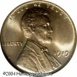 1919 1C MS67 Red PCGS. An impeccable, fiery Gem wi <B>1919 1C MS67 Red PCGS.</B></I> An impeccable, fiery Gem with splendid mint-green peripheral accents. Both the luster and strike of this Superb '19-P would be difficult to improve upon. Population: 49 in 67, 15 finer (11/04).<BR><I>From The Dennis Dewart Collection.</B></I> <BR><BR><B>Important notice:</B> Heritage usually auctions material at the rate of 200-250 lots per hour. On some occasions eBay Live bid software or the Internet may not be able to keep up with the pace of the auction. We recommend placing a realistic absentee bid now as insurance to avoid disappointment. Occasionally the auctioneer may eliminate or reject an eBay Live bid, and the auctioneer may also reopen a lot after the close of the eBay live bidding (usually because we missed an audience bid), and may reject your bid even if it shows you as the winning bidder. By bidding via eBay Live, you agree that Heritage may award the lot to another bidder at its sole discretion under the circumstances described above or any other reasonable circumstances. Since eBay bids are not shown to us until we open the lot on the floor, we treat those bids just like floor bids. In most cases the floor responds before the eBay bid is presented to us, due to Internet lag time, so for consistency we have made it a policy that floor bids are always considered first over tie eBay live bids. Also please note that all Heritage lots purchased through eBay Live carry a 20% Buyer's Premium. Please make sure you read the Terms and Conditions before you bid. This lot is being auctioned in conjunction with a live floor auction by Heritage Galleries & Auctioneers. All final auction and invoice information will be supplied by Heritage Galleries & Auctioneers, and all other information should be considered preliminary. Lot:5151