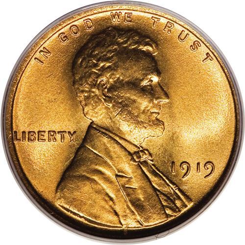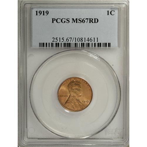 <B>1919 1C MS67 Red PCGS.</B></I> Many so-called common date Lincoln cents have proven to be great condition rarities at the highest levels with few finer examples certified. Although Superb Gem 1919 Lincoln cents are not ultra-rarities, they are certainly elusive in finer grades. This is a splendid piece with brilliant orange luster and soft mint frost. Few blemishes can be found, even with magnification. Population: 54 in 67, 15 finer (3/07).<BR><BR><b>Shipping:</b> Coins & Currency (<a target="_blank" href="http://www.heritageauctions.com/common/shipping.php">view shipping information</a>)