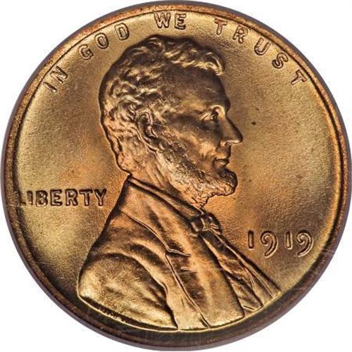 <B>1919 1C MS67 Red PCGS.</B></I> An beautiful, fiery Gem with splendid orange-gold and mint-green coloration. Both the luster and strike of this Superb '19-P would be difficult to improve upon. Both faces are immaculately preserved. Housed in a green-label holder. Population: 55 in 67 Red, 15 finer (8/07).<BR><BR><B>Coin Engraver:</B> Victor D. Brenner<BR><BR><b>Shipping:</b> Coins & Currency (<a target="_blank" href="http://www.heritageauctions.com/common/shipping.php">view shipping information</a>)