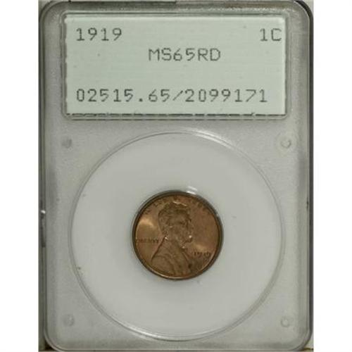 <B>1919 1C MS65 Red PCGS.</B></I> PCGS Population (337/278). NGC Census: (124/78). Mintage: 392,020,992. Numismedia Wsl. Price for NGC/PCGS coin in MS65: $105. (#2515)<BR><BR><B>Coin Engraver:</B> Victor D. Brenner<BR><BR><b>Shipping:</b> Coins & Currency (<a target="_blank" href="http://www.heritageauctions.com/common/shipping.php">view shipping information</a>)