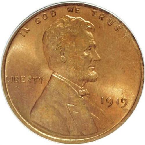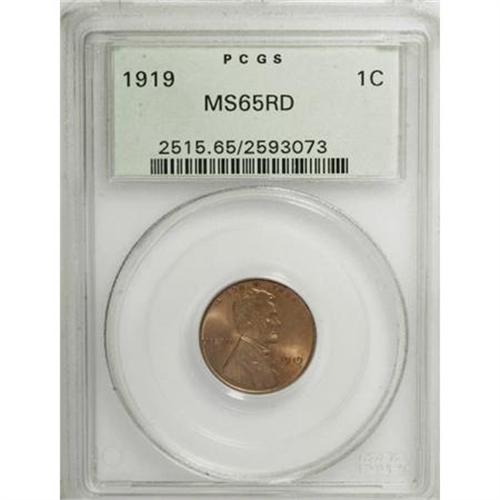<B>1919 1C MS65 Red PCGS.</B></I> . PCGS Population (342/281). NGC Census: (124/80). Mintage: 392,020,992. Numismedia Wsl. Price for NGC/PCGS coin in MS65: $105. (#2515)<BR><BR><B>Coin Engraver:</B> Victor D. Brenner<BR><BR><b>Shipping:</b> Coins & Currency (<a target="_blank" href="http://www.heritageauctions.com/common/shipping.php">view shipping information</a>)