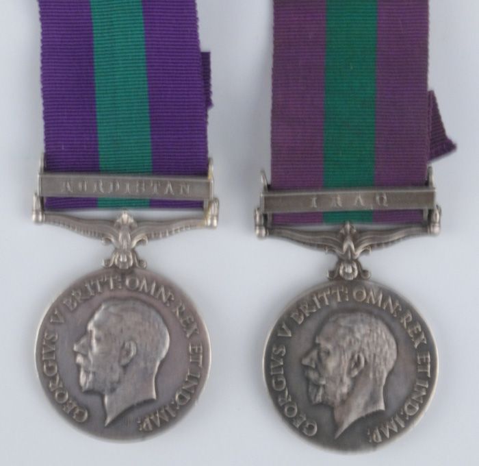 1918 GSM with clasp Kurdistan named to 2520 Hvldr. Chor-Khan 52-Sikhs. Also another 1918 GSM with clasp Iraq named to 2823 Sepoy Ahmed Ali 106 Pioneers. (2 items)