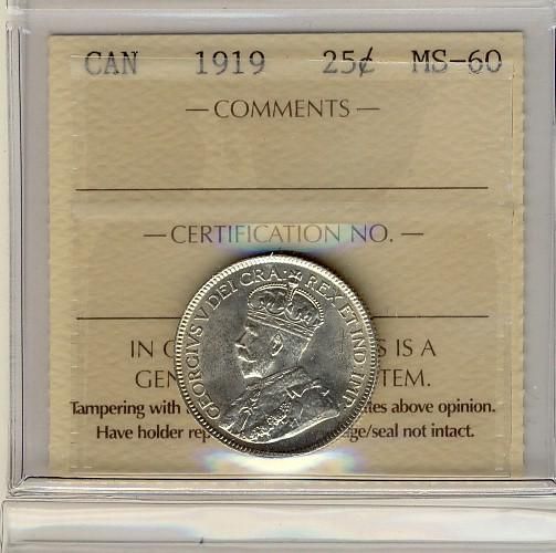 1919 25¢ ICCS MS60.