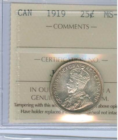 1919 25¢ ICCS MS64. Attractive and lustrous issue.