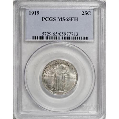 <B>1919 25C MS65 Full Head PCGS.</B></I> A crisply struck and satiny Gem representative of this P-mint issue. The surfaces are mostly silver-gray with a touch of blue, though specks and patches of russet patina are present at the margins.<BR><BR><B>Coin Engraver:</B> Hermon A. MacNeil<BR><BR><b>Shipping:</b> Coins & Currency (<a target="_blank" href="http://www.heritageauctions.com/common/shipping.php">view shipping information</a>\)