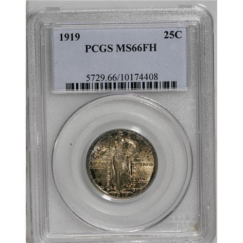 <B>1919<25C> MS66 Full Head PCGS.</B></I> A surprisingly sharply struck Premium Gem that has a razor sharp head and above average details on the waist and shield rivets. Lustrous and nicely preserved with an abundant amount of variegated antique-golden and sunset-rose patina. Population: 58 in 66, 10 finer (7/06).