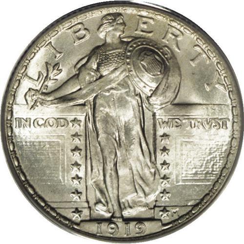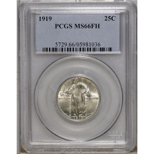 <B>1919 25C MS66 Full Head PCGS.</B></I> This high-mintage date (11.324 million pieces) is one of the most available with a Full Head in the teens. The sharpness of strike on this Premium Gem transcends the Full Head to include nice definition on the chain mail, the vertical stripes of the shield, and boldness in all but two of the rivets. Potent luster enlivens both sides, and well preserved surfaces reveal just a wisp of light tan color. A couple of faint linear marks in the field at the C in AMERICA are mentioned for accuracy. Population: 60 in 66 full Head, 11 finer (12/06).<BR><BR><b>Shipping:</b> Coins & Currency (<a target="_blank" href="http://www.heritageauctions.com/common/shipping.php">view shipping information</a>)