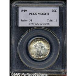 1919 25C MS66 Full Head PCGS. This shimmering choice Gem piece has superb strike detail with an unbelievably well struck shield that displays even well defined vertical stripes in the central device. Medium brown toning over the upper and lower portions of the obverse and around portions of the reverse rim only add charm to this already magnificent Full Head example. Minimal contact marks contribute to the grade. The eye appeal is impressive. Important notice: Heritage usually auctions material at the rate of 200-250 lots per hour. On some occasions eBay Live bid software or the Internet may not be able to keep up with the pace of the auction. We recommend placing a realistic absentee bid now as insurance to avoid disappointment. Occasionally the auctioneer may eliminate or reject an eBay Live bid, and the auctioneer may also reopen a lot after the close of the eBay live bidding (usually because we missed an audience bid), and may reject your bid even if it shows you as the winning bidder. By bidding via eBay Live, you agree that Heritage may award the lot to another bidder at its sole discretion under the circumstances described above or any other reasonable circumstances. Also please note that all Heritage lots purchased through eBay Live carry a 20% Buyer's Premium. Please make sure you read the Terms and Conditions before you bid.