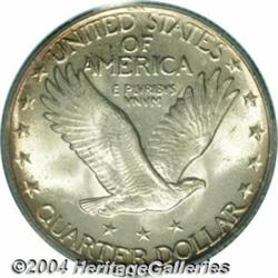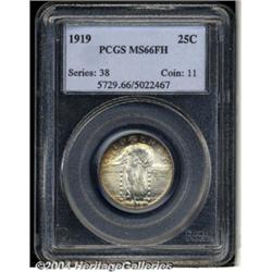 <B>1919<25C> MS66 Full Head PCGS.</B></I> The 1919 is the most commonly encountered pre-1925 quarter of the Type Two design. As a result, it is frequently found with full head definition when it is located in Uncirculated grades. This is an especially attractive coin that has coruscating mint luster and is mostly brilliant except for a heavy accent of russet and blue toning around each side. <BR><BR><B>Important notice:</B> Heritage usually auctions material at the rate of 200-250 lots per hour. On some occasions eBay Live bid software or the Internet may not be able to keep up with the pace of the auction. We recommend placing a realistic absentee bid now as insurance to avoid disappointment. Occasionally the auctioneer may eliminate or reject an eBay Live bid, and the auctioneer may also reopen a lot after the close of the eBay live bidding (usually because we missed an audience bid), and may reject your bid even if it shows you as the winning bidder. By bidding via eBay Live, you agree that Heritage may award the lot to another bidder at its sole discretion under the circumstances described above or any other reasonable circumstances. Since eBay bids are not shown to us until we open the lot on the floor, we treat those bids just like floor bids. In most cases the floor responds before the eBay bid is presented to us, due to Internet lag time, so for consistency we have made it a policy that floor bids are always considered first over tie eBay live bids. Also please note that all Heritage lots purchased through eBay Live carry a 20% Buyer's Premium. Please make sure you read the Terms and Conditions before you bid. </span></font></tr></table></td></tr></table>