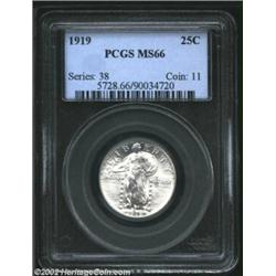 1919 25C MS66 PCGS. A well struck Gem that comes relatively close to the Full Head designation, as the earhole and the three sprigs are apparent. Brilliant and highly lustrous with exquisite preservation. Important notice: We expect to be auctioning lots at the rate of 200-250 per hour. Sometimes eBay Premier live bid software cannot keep up with that pace, so we strongly recommend that you place a realistic proxy bid now as insurance to avoid disappointment. Also please note that all Heritage/CAA lots purchased through eBay Premier carry a 20% Buyer's Premium. Please make sure you read the Terms and Conditions.