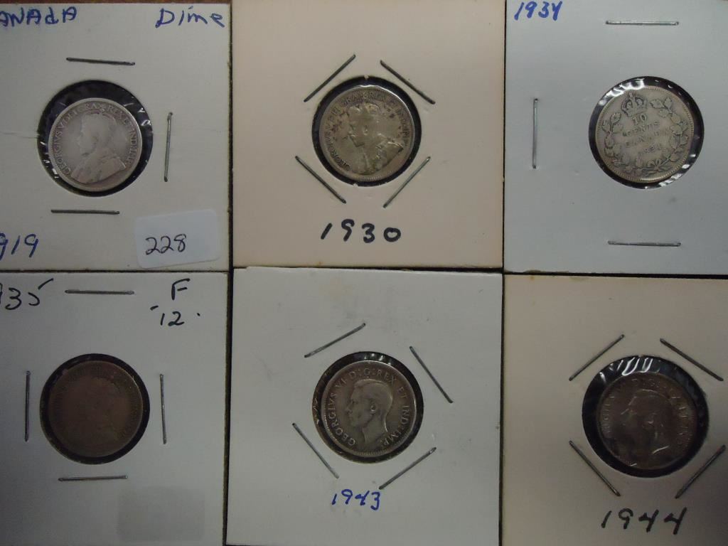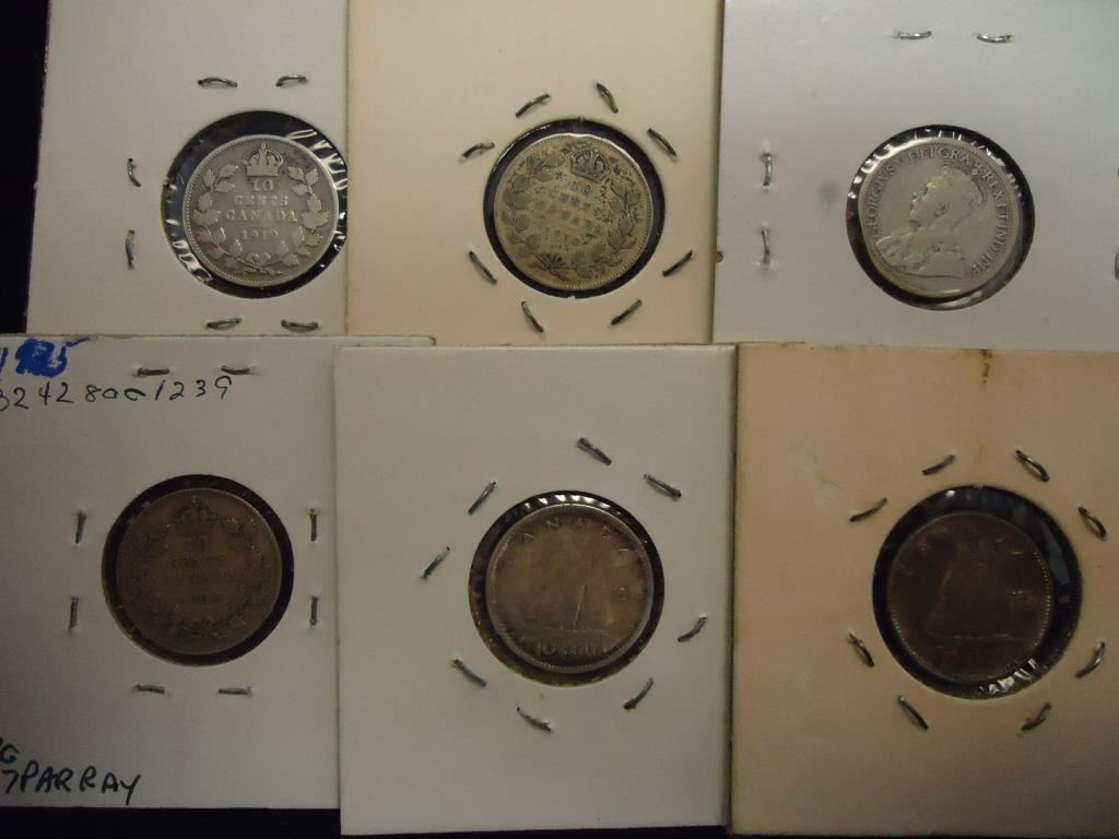 1919,30,34,35,43 & 44 CANADA SILVER 10 CENTS