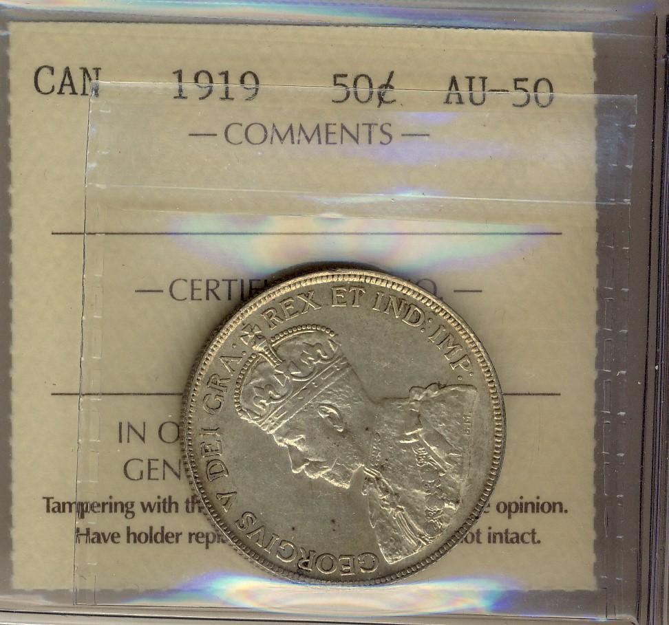 1919 50¢ ICCS AU50. A well struck and lustrous example.