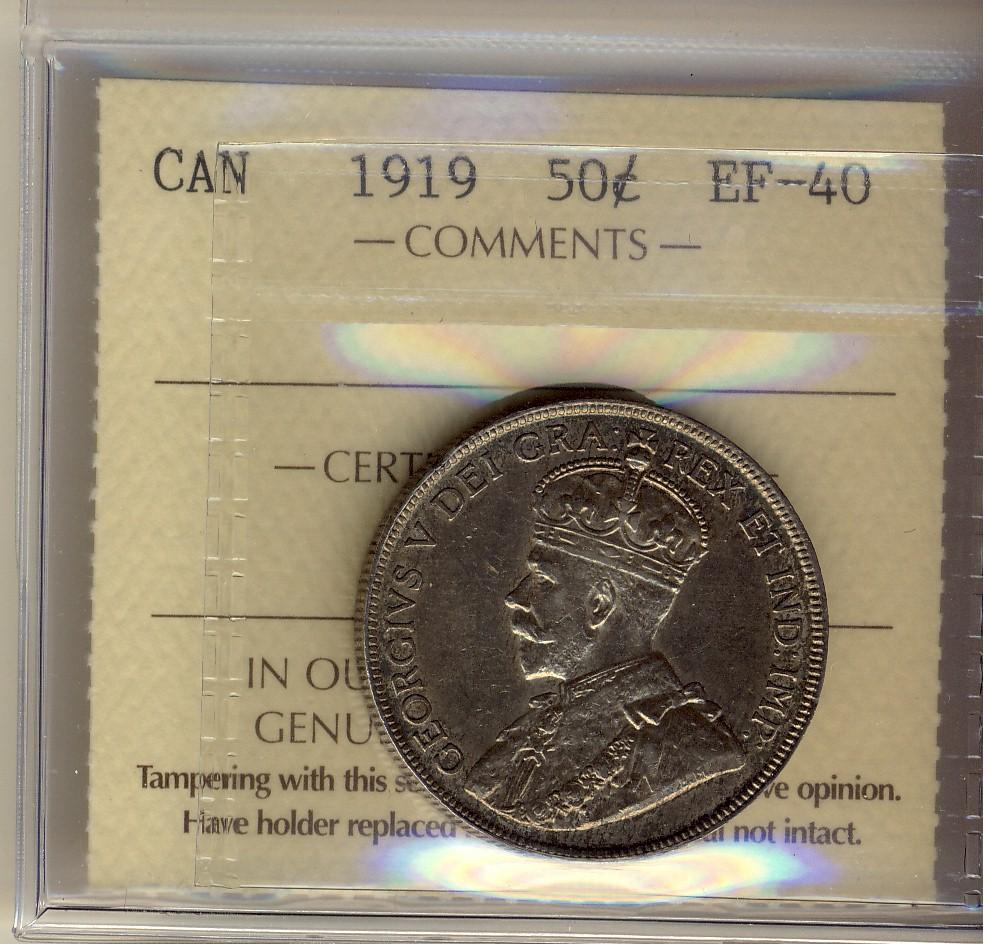 1919 50¢ ICCS EF40. Nice eye appeal.
