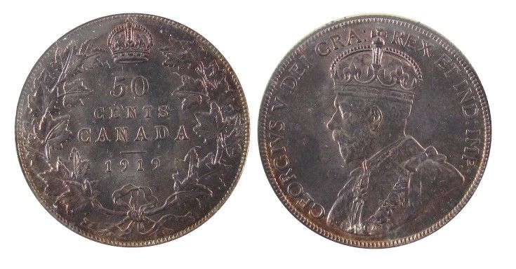 1919 50¢ ICCS MS63. PQ issue with gem pinkish and gold shades. Looks much better than the grade assigned.
