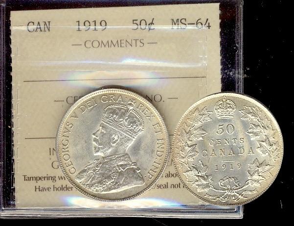 1919 50¢ ICCS MS64. White with golden rim tone.