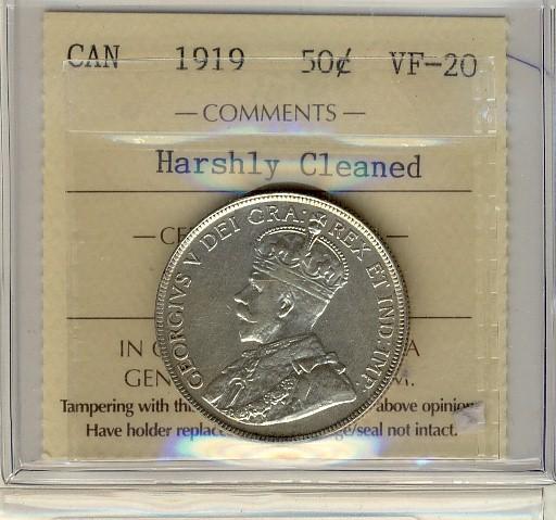 1919 50¢ ICCS VF20 Harshly Cleaned