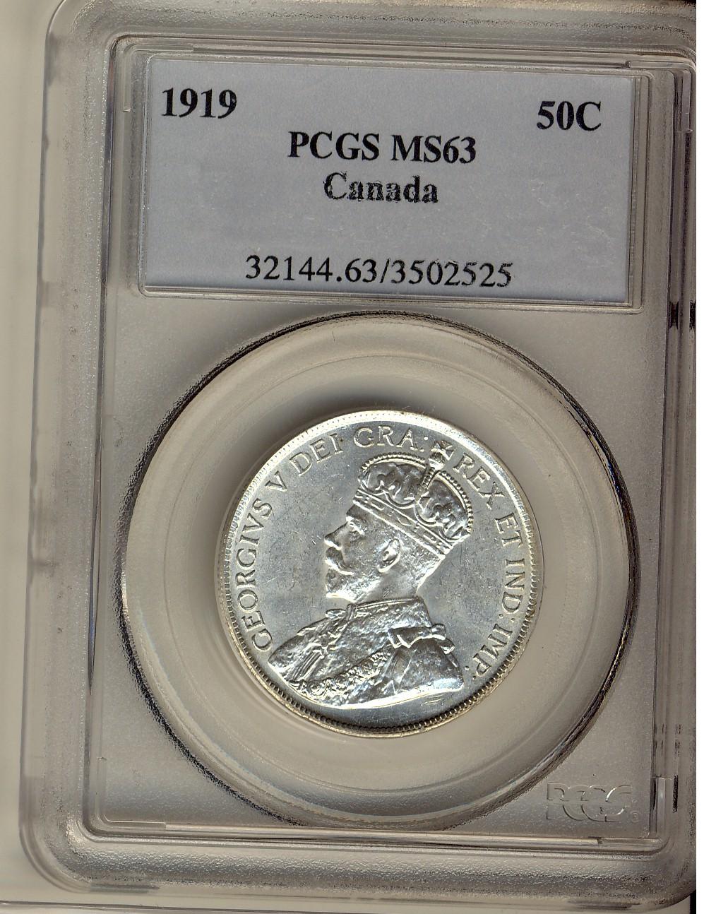 1919 50¢ PCGS MS63. Pristine white example with full lustre.