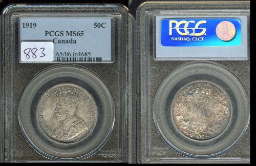 1919 50¢ PCGS MS65 Amazingly toned with full lustre, nearly flawless. A superb example!