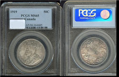 1919 50¢ PCGS MS65 Amazingly toned with full lustre, nearly flawless. A superb example!