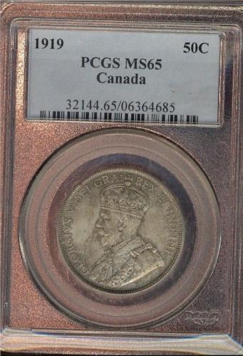 1919 50¢ PCGS MS65PQ, intense autumn shades over full underlying luster. Scarce in this condition.