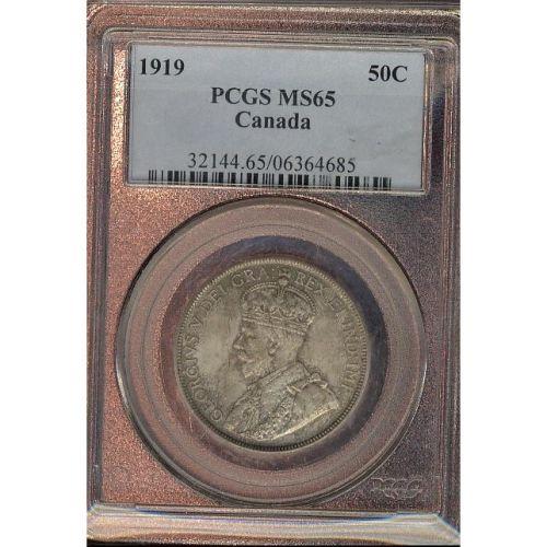 1919 50¢ PCGS MS65PQ, intense autumn shades over full underlying luster. Scarce in this condition.