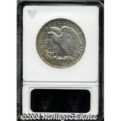 <B>1919<50C> AU55 ANACS.</B></I> A scarce, low production issue that enjoys constant demand from collectors of this popular series. The striking details are well brought up, although wear is noticeable on the central highpoints, and there is just the slightest overlay of light patina on each side. A premium coin for the assigned grade, with no noticeable surface problems. <BR><BR><B>Important notice:</B> Heritage usually auctions material at the rate of 200-250 lots per hour. On some occasions eBay Live bid software or the Internet may not be able to keep up with the pace of the auction. We recommend placing a realistic absentee bid now as insurance to avoid disappointment. Occasionally the auctioneer may eliminate or reject an eBay Live bid, and the auctioneer may also reopen a lot after the close of the eBay live bidding (usually because we missed an audience bid), and may reject your bid even if it shows you as the winning bidder. By bidding via eBay Live, you agree that Heritage may award the lot to another bidder at its sole discretion under the circumstances described above or any other reasonable circumstances. Since eBay bids are not shown to us until we open the lot on the floor, we treat those bids just like floor bids. In most cases the floor responds before the eBay bid is presented to us, due to Internet lag time, so for consistency we have made it a policy that floor bids are always considered first over tie eBay live bids. Also please note that all Heritage lots purchased through eBay Live carry a 20% Buyer's Premium. Please make sure you read the Terms and Conditions before you bid.