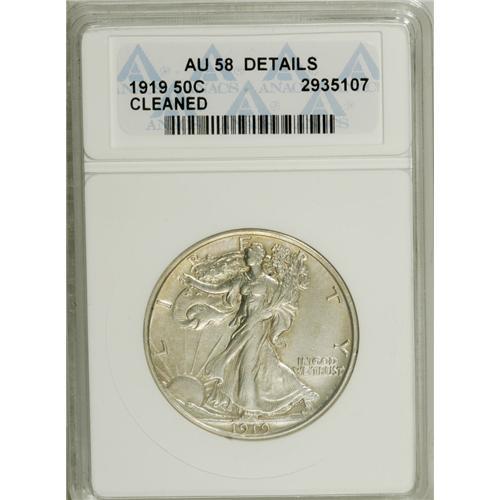 1919 50C --Cleaned--ANACS. AU58 Details. Light golden-b