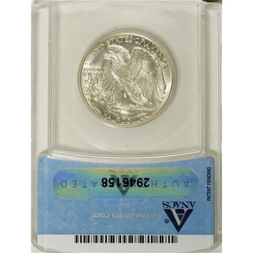 <B>1919 50C MS61 ANACS.</B></I> Softly lustrous and suitably struck with no trace of wear. Thin gold-gray patina graces parts of the surfaces, while light flaws affect the fields.<BR><BR><b>Shipping:</b> Coins & Currency (<a target="_blank" href="http://www.heritageauctions.com/common/shipping.php">view shipping information</a>)