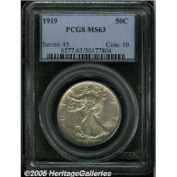 <B>1919 50C MS63 PCGS.</B></I> A brilliant and lustrous Select specimen, with a good strike and shimmering surfaces that are free of mentionable abrasions. The reverse is virtually as struck. With a mintage under 1 million, this is a desirable date in the Walking Liberty Half series.