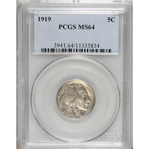 <B>1919 5C MS64 PCGS.</B></I> PCGS Population (524/437). NGC Census: (362/188). Mintage: 60,868,000. Numismedia Wsl. Price: $176. (#3941)<BR><BR><b>Shipping:</b> Coins & Currency (<a target="_blank" href="http://www.heritageauctions.com/common/shipping.php">view shipping information</a>)