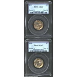 1919 5C MS64 PCGS, boldly struck with nice olive tone and some rose highlights, just one tiny tick mark was found, on the Indian's jaw; and a 1930 MS65 PCGS, the well struck surfaces are satiny and lustrous, with just a few minor blemishes, some chatter near the center of each side is "as struck", and not scratchy abrasions. 2 coins Important notice: We expect to be auctioning lots at the rate of 200-250 per hour. On occasion eBay live bid software cannot keep up with the pace of the auctions where 4-5 lots per minute can hammer down, so we recommend that you place a realistic absentee bid now as insurance to avoid disappointment. Also please note that all Heritage/CAA lots purchased through eBay Live carry a 20% Buyer's Premium. Please make sure you read the Terms and Conditions.