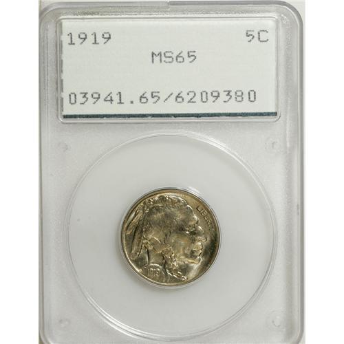 <B>1919 5C MS65 PCGS.</B></I> PCGS Population (318/126). NGC Census: (294/86). Mintage: 60,868,000. Numismedia Wsl. Price for NGC/PCGS coin in MS65: $500. (#3941)<BR><BR><b>Shipping:</b> Coins & Currency (<a target="_blank" href="http://www.heritageauctions.com/common/shipping.php">view shipping information</a>)