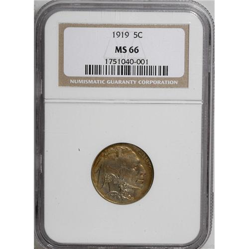 <B>1919<5C> MS66 NGC.</B></I> Russet and sunset-orange patina surrounds a small dove-gray center. Intricately detailed for this issue with pleasing, somewhat satiny luster.