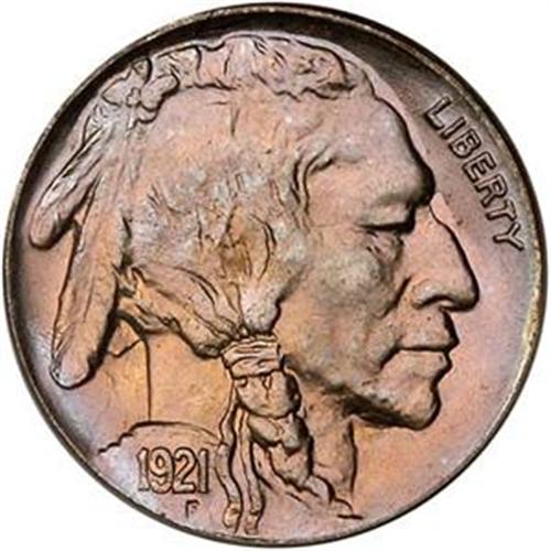 Blazing luster on satiny white surfaces. A touch of weakness is seen at the Indian's central hair, but on the reverse, the dies were spaced in such a way that the bison received a full blow, imparting all detail.