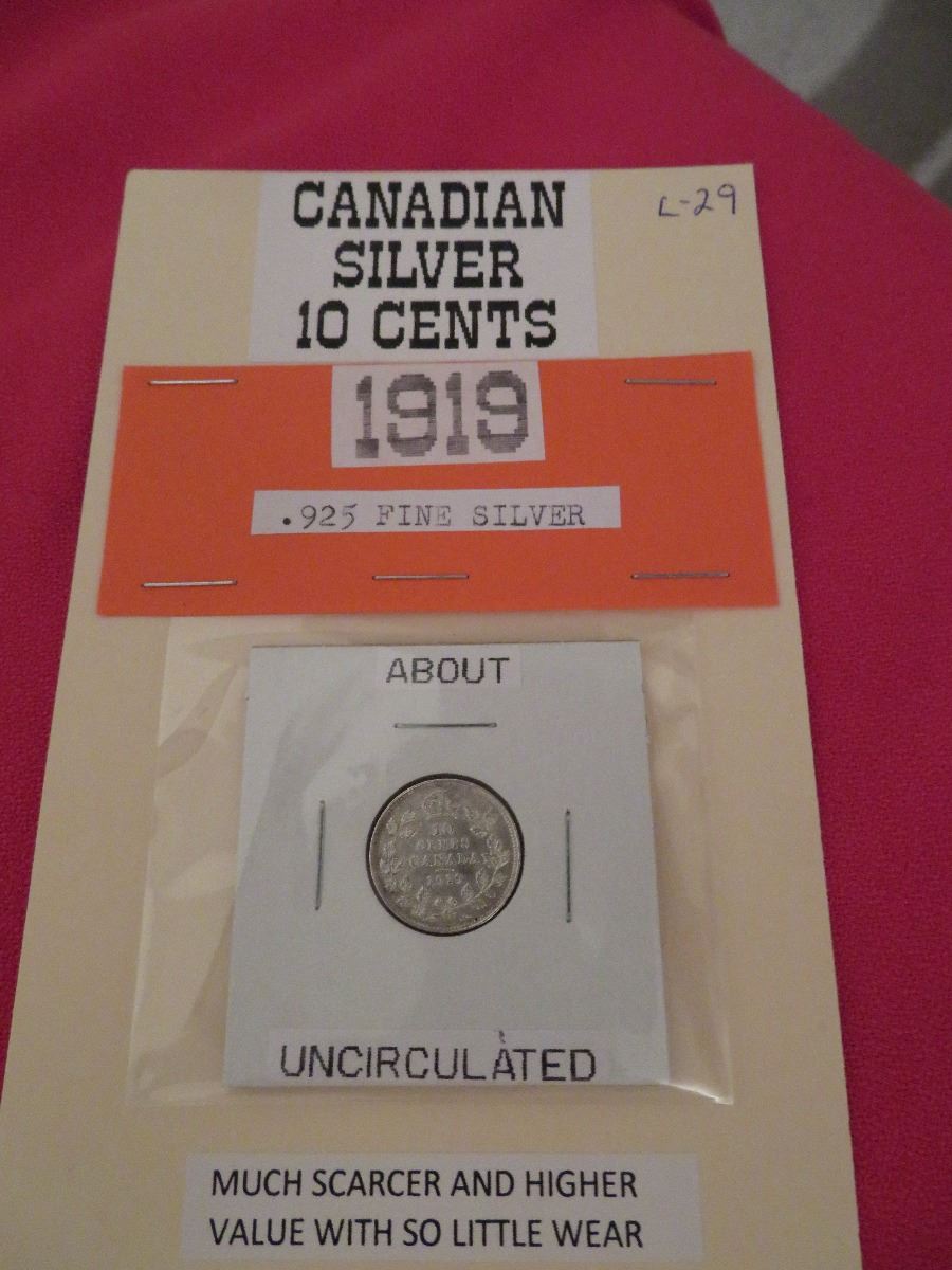 1919 .925 silver 10 cents – about unc beautiful collectable