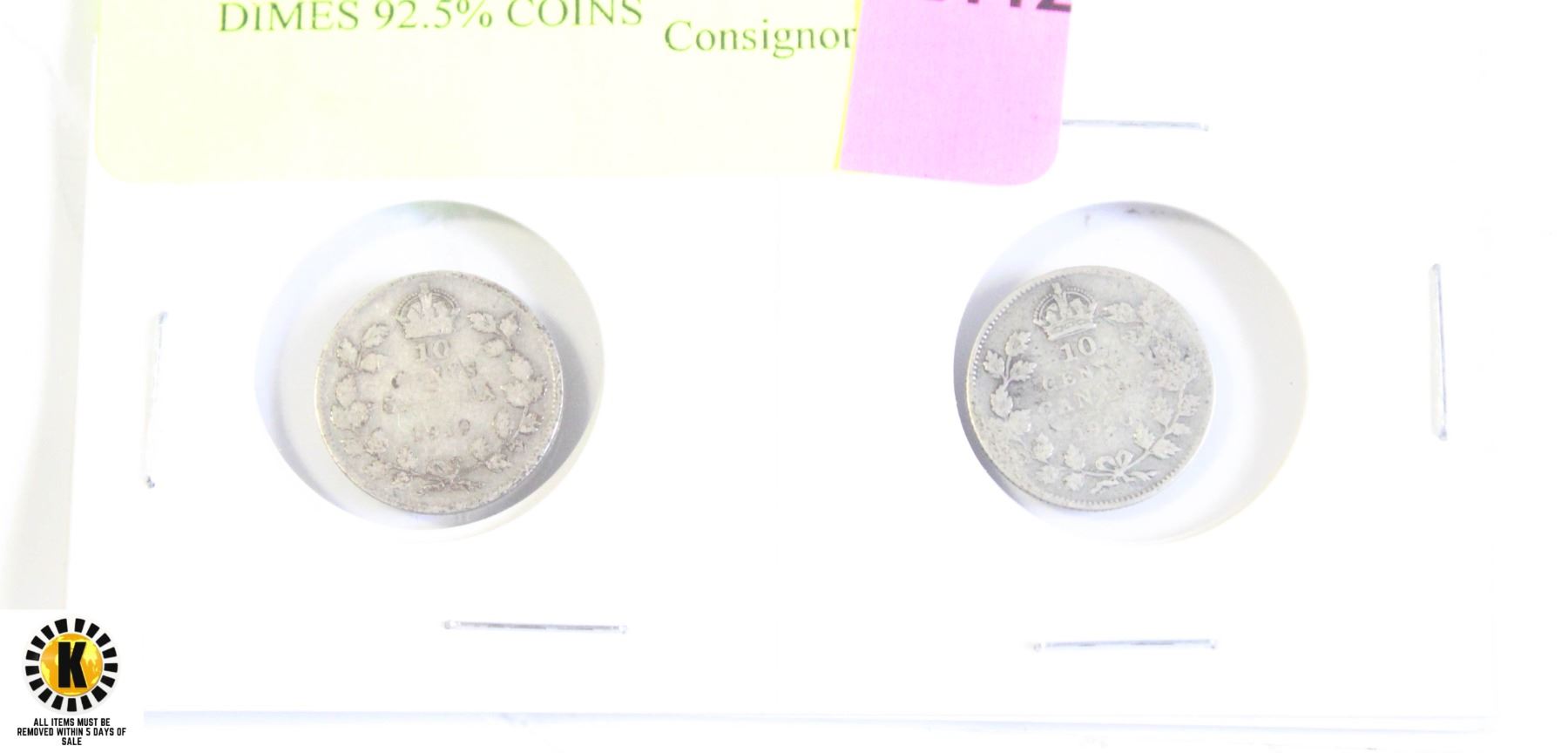 1919 AND 1920 CANADA SILVER DIMES 92.5% COINS