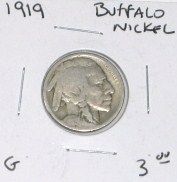 1919 BUFFALO NICKEL RED BOOK VALUE IS $3.00+ *NICE EARLY GOOD GRADE NICKEL*!! NICKEL CAME OUT OF SAFE!! ***Coin, Currency & All Items Listed in this auction - Grades, Conditions and Values are not Safe Deposit Coins LLC Responsibilty. Grades, Condition and Values are determined by Consigner(s) & Buyers ONLY