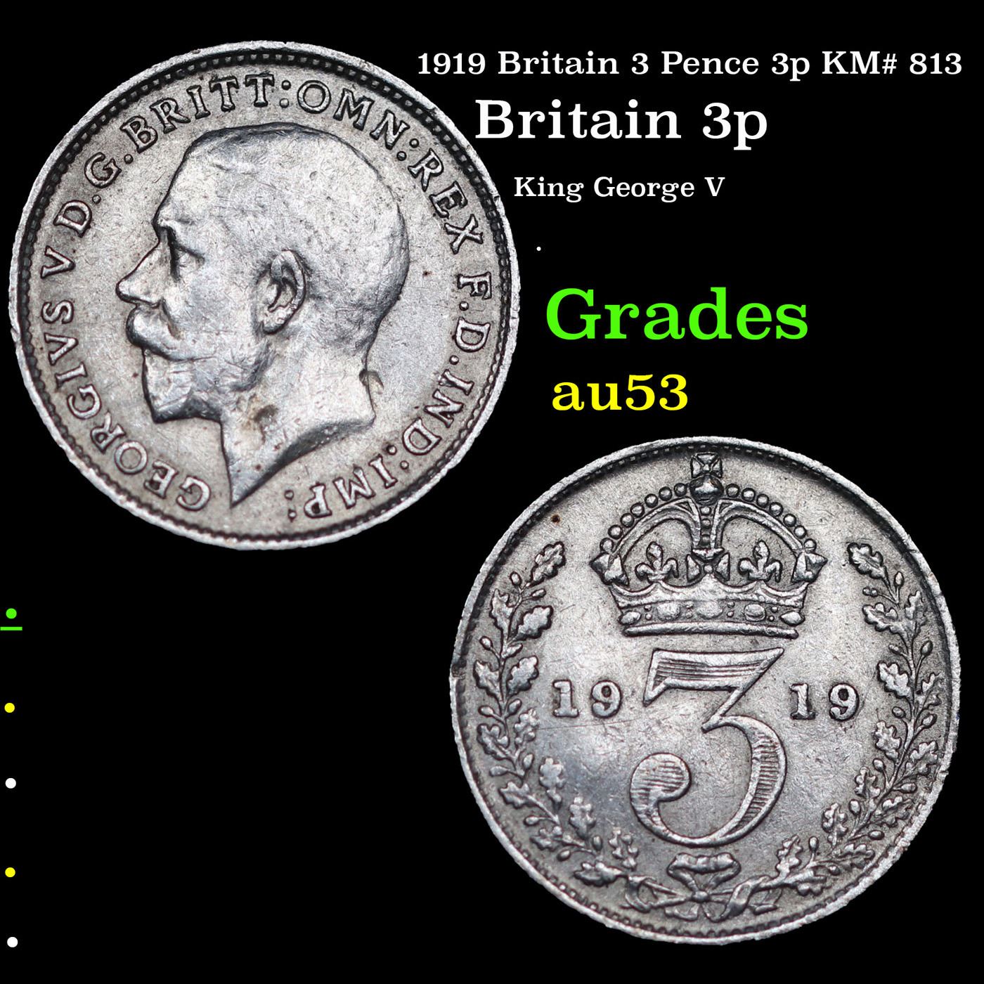 1919 Britain 3 Pence 3p KM# 813 Grades Select AU.
