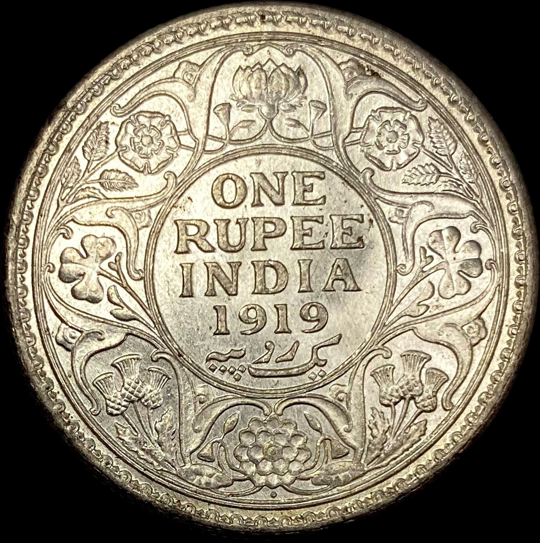 1919 British-India Silver 1 Rupee UNCIRCULATED