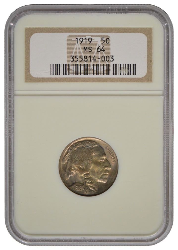 One 1919 Buffalo Nickel Coin NGC MS64.