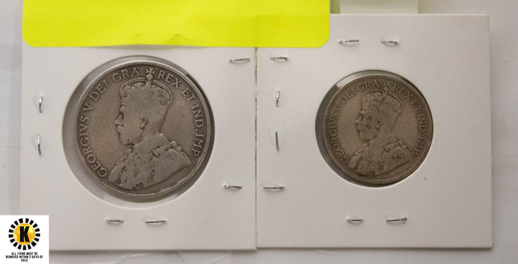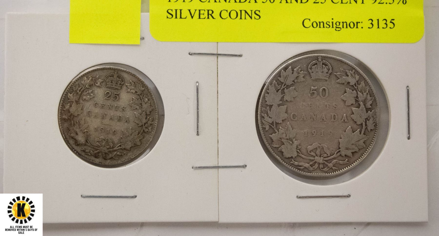 1919 CANADA 50 AND 25 CENT 92.5% SILVER COINS