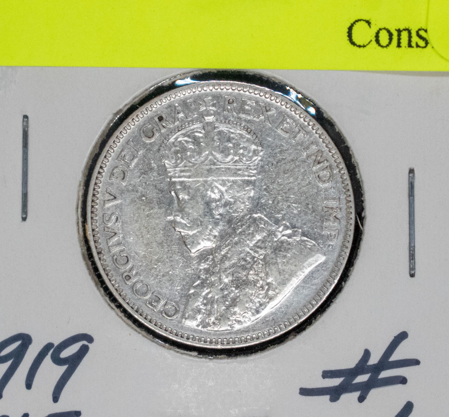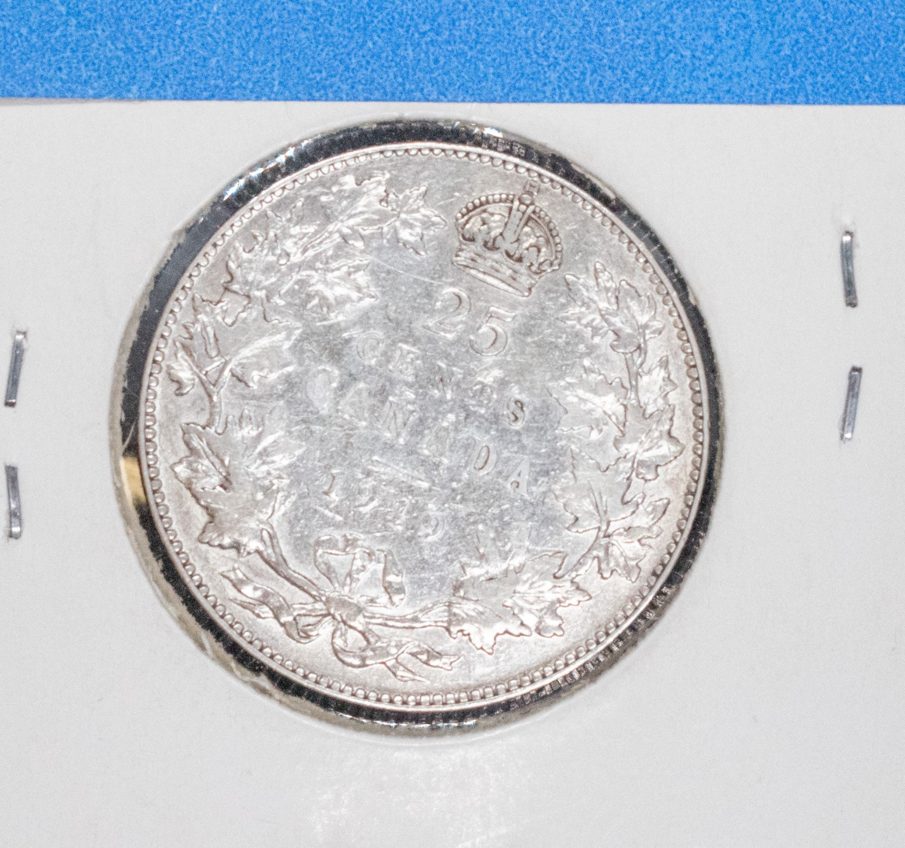 1919 CANADA SILVER 25 CENT UF