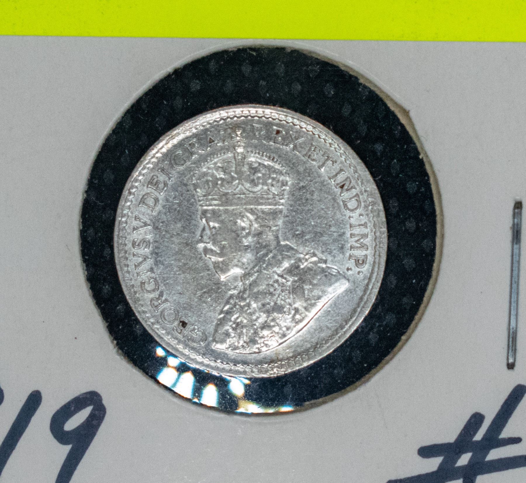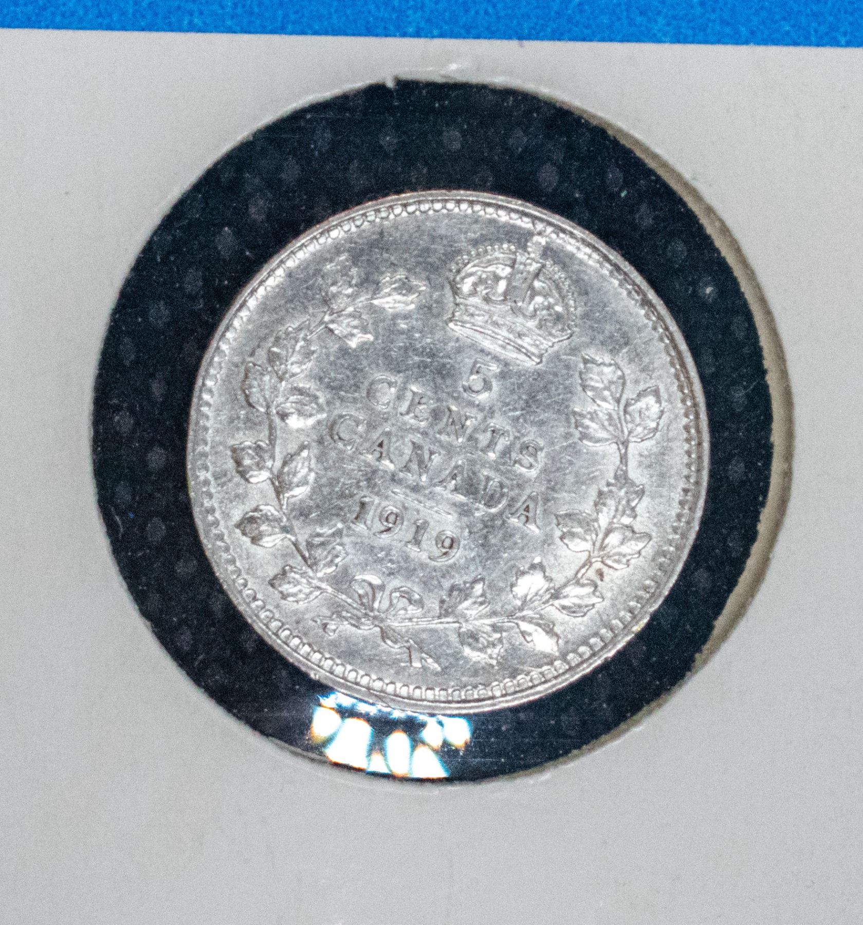 1919 CANADA SILVER 5 CENT COIN EF