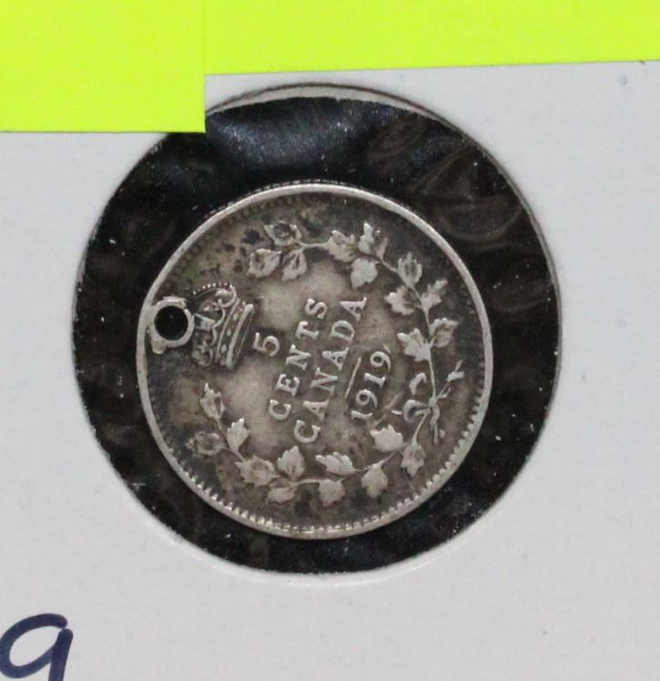 1919 CANADA SILVER 5 CENT COIN PENDANT