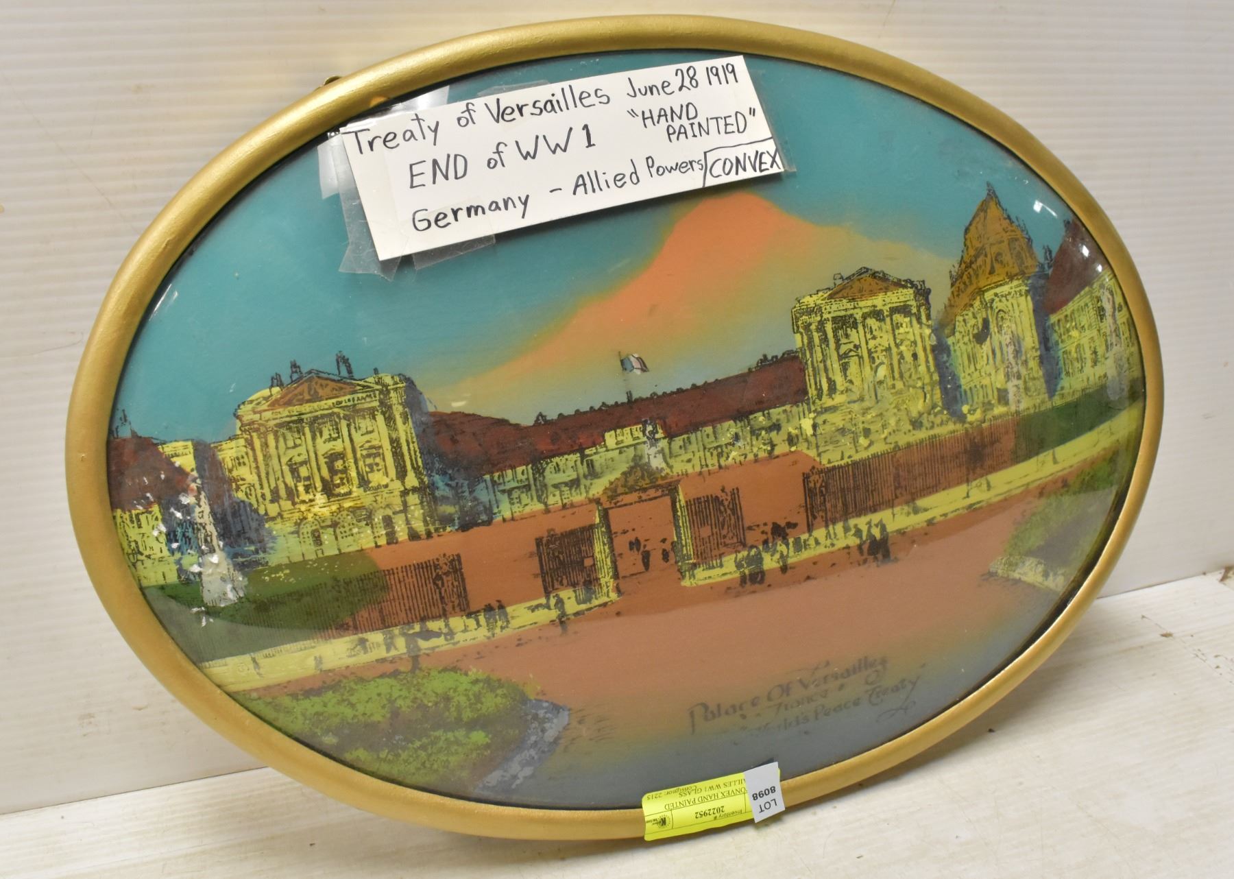 1919 CONVEX HAND PAINTED VERSAILLES WW1 GLASS