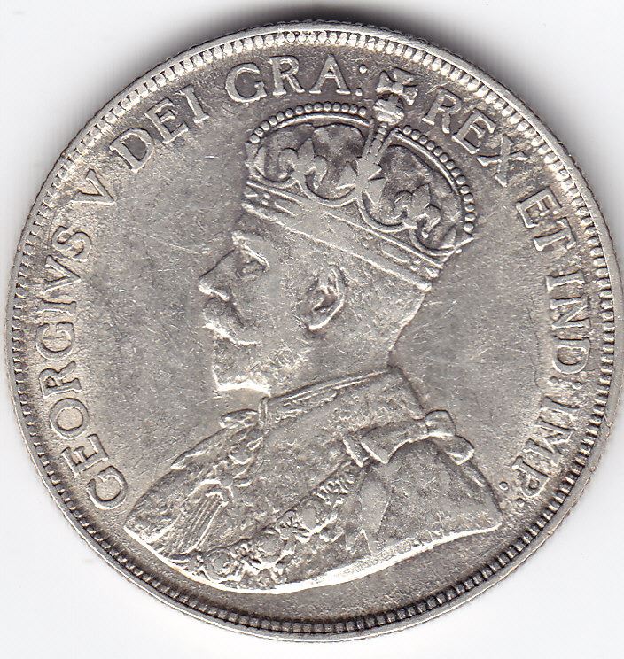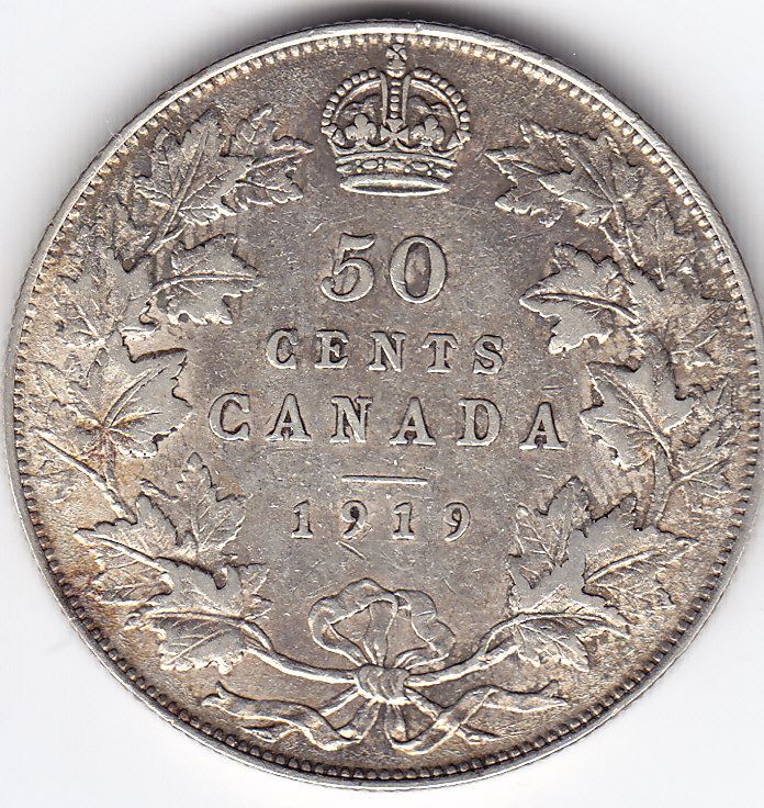 1919 Canadian Silver 50-Cent Half Dollar Coin - VF-20 Condition