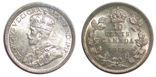 0170 - 1919 Canada Ten Cents-ICCS MS60